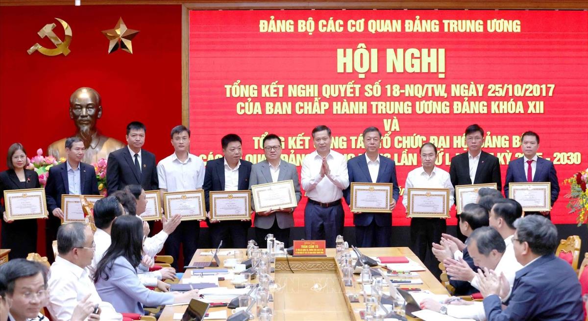 Tại Hội nghị, đồng chí Trần Cẩm Tú và đồng chí Nguyễn Long Hải, Phó Bí thư Thường trực Đảng uỷ các cơ quan Đảng Trung ương đã trao Bằng khen tặng một số tập thể, cá nhân tiêu biểu trong thực hiện Nghị quyết số 18-NQ/TW và trong công tác tổ chức Đại hội Đảng bộ.